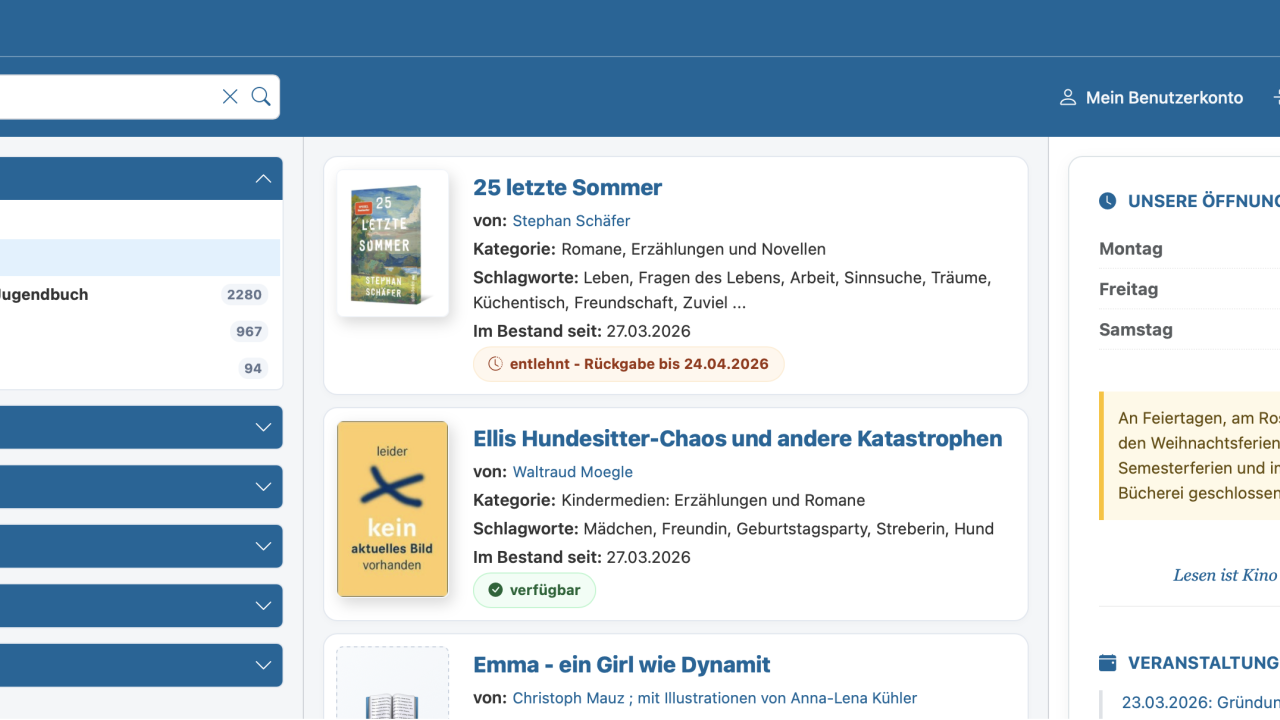 Im Biblioweb kannst du ohne Anmeldung im Bestand unserer Bibliothek recherchieren.